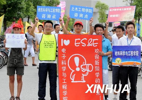 8月29日,东南大学的学生志愿者在迎接新同学。 [ 详细]