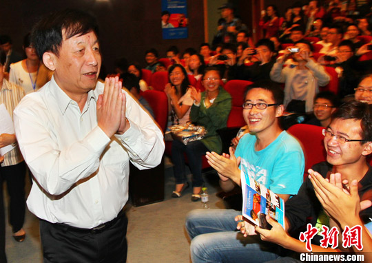 当学生们知道易中天将来学校做演讲后,纷纷赶来听易中天的演讲 泱波 摄