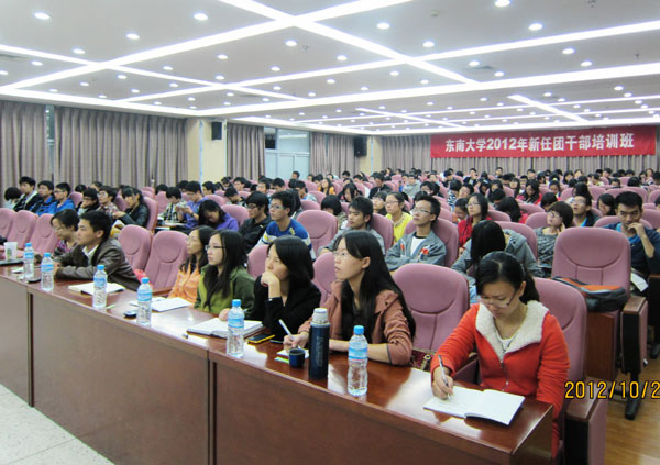 为扎实推进“青马工程”的实施,东南大学团委于10月23日晚在外国语学院报告厅举行2012年专兼职团干部培训班与2012级本科生新任团支书培训班开班仪式。来自各个院系的新任专兼职团干部和140多位12级本科生团支书参加了本次开班仪式。本次开班仪式由校团委副书记赵剑锋主持,校团委书记周勇应邀做题为“以文化人——大学因校园文化而精彩”的讲座。