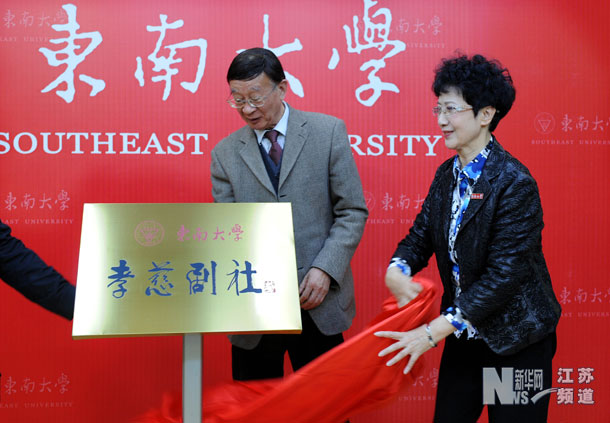 10月31日,黄孝慈(右)和文化届人士为东南大学孝慈剧社揭牌。