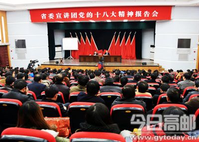 韩方指出,郭广银教授以精准通俗的语言,深刻透彻地宣讲了党的十八大精神,全市上下一定要加强学习、加深理解,更好地指导高邮工作实际。他要求,从现在开始,各乡镇(园区)、各部门要深入推进学习贯彻十八大精神活动,认真研读十八大报告、党章等,同时要结合各乡镇(园区)、各部门工作实际做好当前、谋划来年,以实实在在的行动抓好十八大精神的学习贯彻落实。