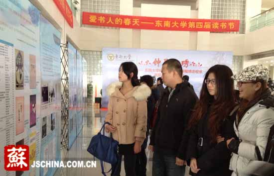 参观“钟灵毓琇——东南大学纪念一代大师顾毓琇老校长图片展”的同学们。本网记者 王静 摄