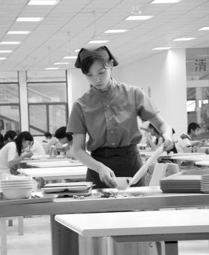 事情起因原来是3月16日,一位曾在东南大学读书的@戴眼镜民工 发出的一条微博“曾今虎踞龙蟠上的红人,还曾流传一段佳话,各位还记得么?”,微博里还附上一张照片:一个服务生打扮的年轻女孩,样貌清秀,垂着头,专注地收拾着餐盘。