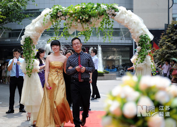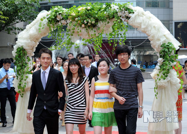 新华网江苏频道南京6月18日电 6月17日,南京东南大学医学院举办“似水流年,医路同行”2013届毕业生毕业典礼,445名中国毕业生、125名外国留学生毕业生参加红毯走秀、签名纪念、校园留影等活动。在“医路同行”走秀仪式中,同学们以男女携手同行的形式,展示浪漫风采,纪念青春时光。一些同窗情侣在活动现场表达一生相爱之情。新华社记者孙参摄