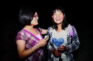 马梦怀(右)刚一下车就见到了前来接她的宋云燕老师 现代快报记者 辛一 摄