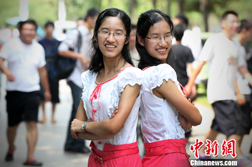 8月24日,来自无锡的双胞胎姐妹顾译尹和顾译予在东南大学校园内拍摄的第一张照片。