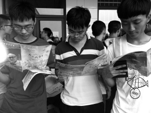 “咦,这是什么?”刚一出摊,摆放着《大学,我来了》新生手册的桌子就引起了许多同学和家长的注意,纷纷前来向工作人员索要阅读。来自东南大学2013级人文学院的李静妍同学接过手册很高兴地翻看起来,“这个手册封面还挺小清新的,刚才我大概翻了一下,觉得内容很丰富,让我这个天津来的,能够很快速了解南京这座城市。我看过我们学院一个学姐编的南京关于吃东西的地方指南,感觉她的文笔很好。而这本册子,我觉得更能吸引我们,实用信息更多,我准备把它好好收藏起来。”一些男同学拿过手册后随即翻到了中间那一页,“这是南京的地图吗?太好了。咦,我们现在是在哪儿?”看到手册中间的南京手绘地图,同学们立马来了劲儿,找起了自己学校所在的位置,找了半天,才恍然大悟道,“原来东南大学有三个校区呀,南京可真大。”