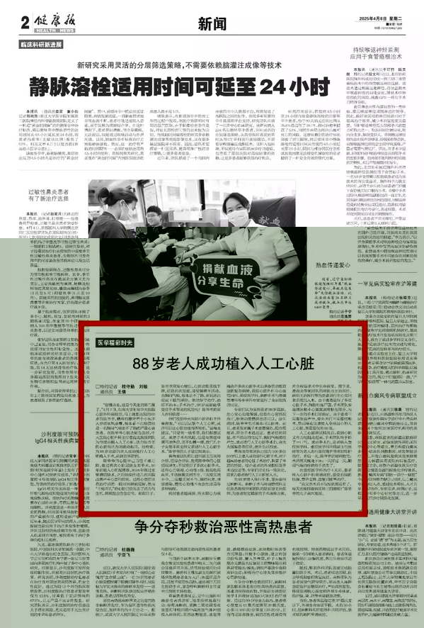 “您慢点走,这是今天走的第二圈了。”4月7日,东南大学附属中大医院心脏外科病房里,马上就要出院的88岁的陈爷爷,精神抖擞背着个小包正大步流星地走着,根本看不出他曾经是一名胸闷气喘走不了路的严重心衰患者。在陈爷爷心脏功能告急时,中大医院心脏外科主任曹海龙教授团队为他成功植入人工心脏,助力陈爷爷的心脏有活力地跳动起来。经检索,为88岁高龄的老人成功施行人工心脏植入手术,尚属世界首例。