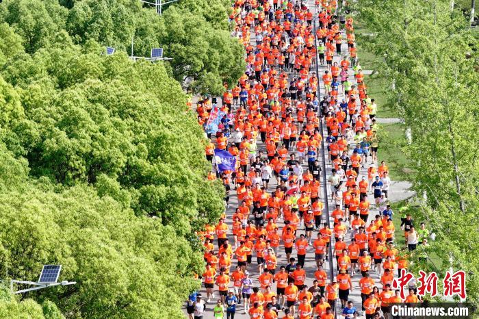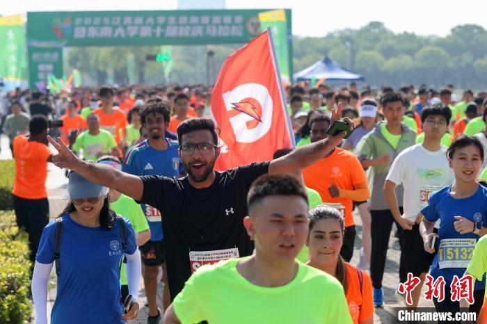 图为留学生参与校庆马拉松。中新社记者 泱波 摄