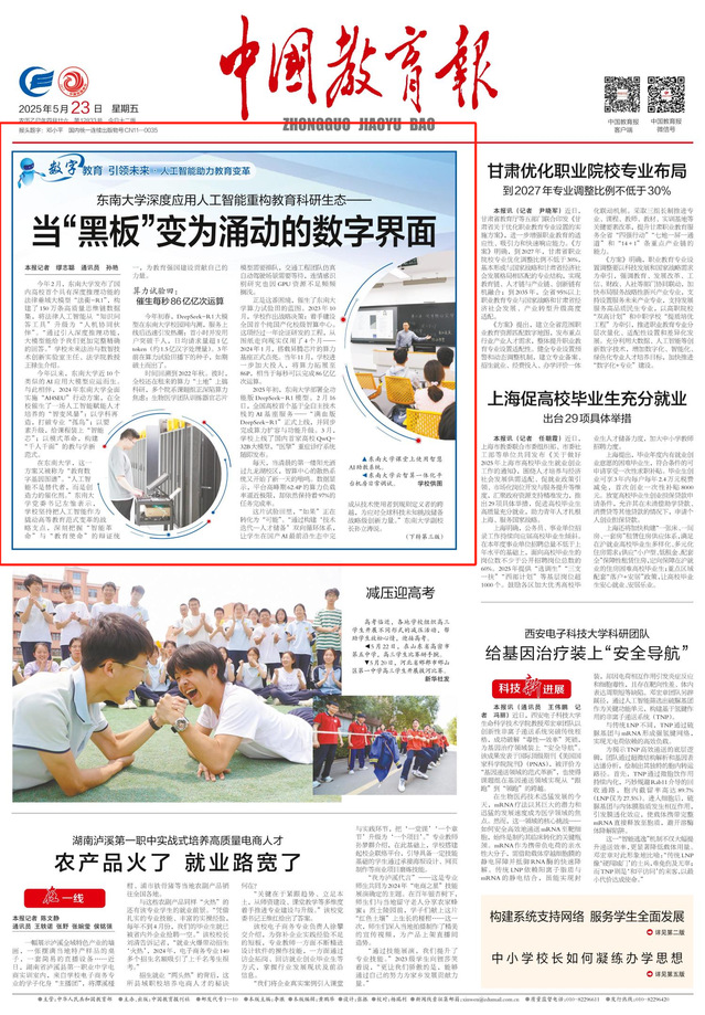 如今,在东南大学,AI不是冷冰冰的技术,而是激发创造力的火种;数字化不是疾风骤雨的颠覆,而是静水流深的生态重构。因人而塑、向新而生,让每名学生的成长都被看见,让每份智慧的火花都被传承——这是这所有着123年历史的大学在数字时代赋予自己的新使命。