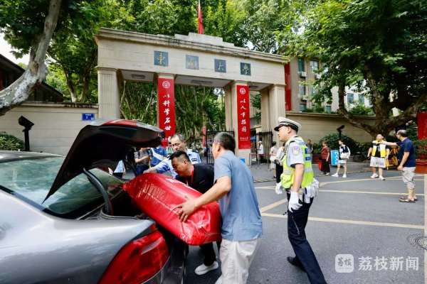 不仅车位“让了出来”,社区志愿者还主动提供矿泉水和防暑物资,热情地为家长搬运行李、指引路线。一位从吉林赶来的家长感慨:“还没看到风景,先被南京的温度暖到了。”