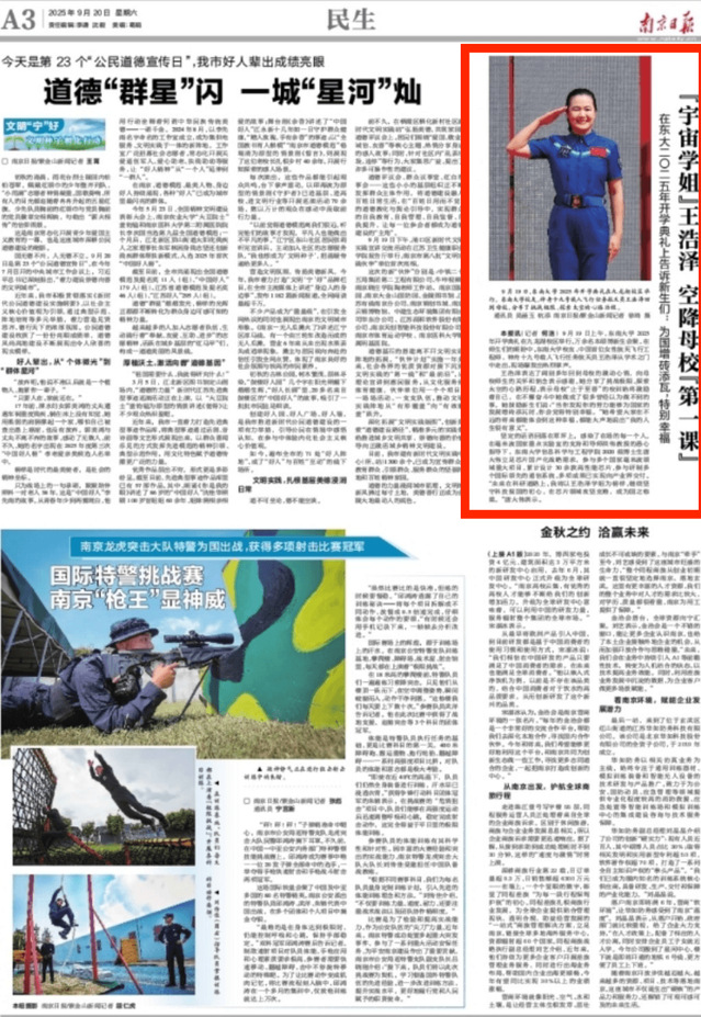 本报讯(记者 何洁) 9月19日上午,东南大学2025年开学典礼在九龙湖校区举行,万余名本硕博新生会聚。在师生们的期盼中,东南大学校友、中国首位女性航天飞行工程师、神舟十九号载人飞行任务航天员王浩泽从学术之门中走出,现场爆发出热烈掌声。