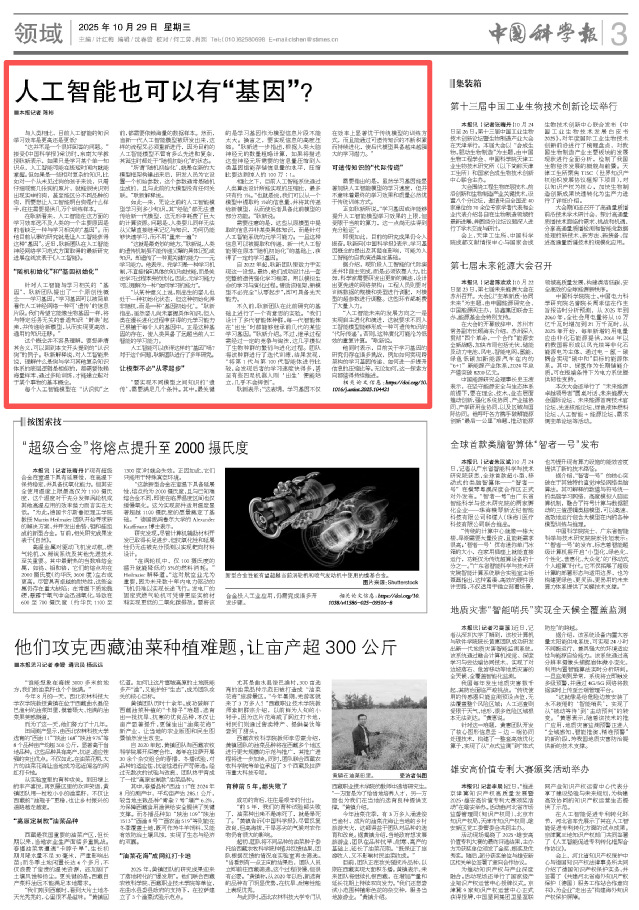 即便如此,目前的研究成果仍令人振奋。耿新向《中国科学报》表示,学习基因概念的提出及其潜在影响,可能为人工智能的自我演进奠定基础。