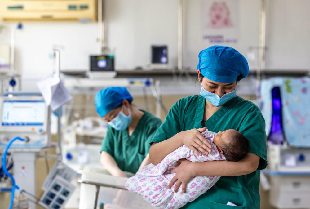 2025年1月29日,医护人员在贵州省黔西市人民医院新生儿科为新生儿做日常护理。新华社发(范晖 摄)