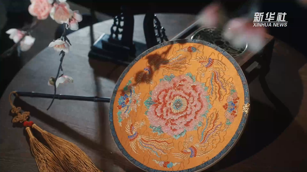 现场还展示了一款全新宋锦与云锦结合的现代艺术品《花开盛世》双面团扇。该作品是国家级非物质文化遗产项目南京云锦木机妆花手工织造技艺代表性传承人周双喜与国家级非物质文化遗产项目宋锦织造技艺代表性传承人钱小萍首次合作,双非遗技艺融合,精工细作,以现代工艺美术的方式进行表达。