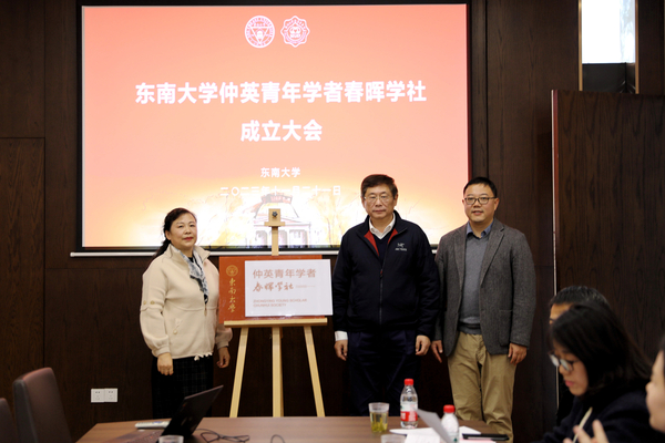 会上,黄大卫、李霞等人共同为“东南大学仲英青年学者春晖学社”揭牌,并审议通过《东南大学仲英青年学者春晖学社章程》,选举产生了首届社长、副社长。