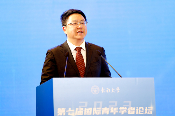 王华在致辞中代表南京市委、市政府向论坛的举办表示祝贺。他从古今交融的厚重感、崇文尊才的书卷气、兴业进取的活跃度和舒适宜居的幸福感四个维度向大家展示了南京之美。他表示,南京市比以往任何时候都更加重视人才、渴求人才,并拿出满满的诚意,焕新推出“真金白银”的政策,量身定制“才尽其用”的平台,努力营造“近悦远来”的生态。他邀请海内外青年人才走进南京、选择东大,共同书写不负时代、不负韶华的精彩篇章。