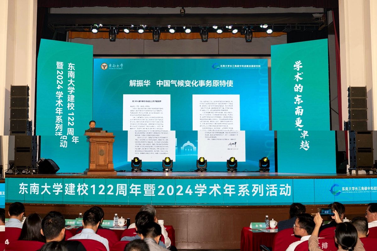 开幕式上,中国气候变化事务原特使解振华向论坛发来书面致辞。解振华在致辞中表示,科技创新是推动碳达峰碳中和的关键,东南大学在碳中和领域具有良好的学科基础,期待东南大学进一步探索绿色低碳科学技术,加强与国内外高校在气候变化及碳中和领域的交流合作,助力中国生态文明建设和全球绿色低碳可持续发展。希望更多青年学子参与到这项事业中来,用智慧和汗水书写新的绿色篇章。