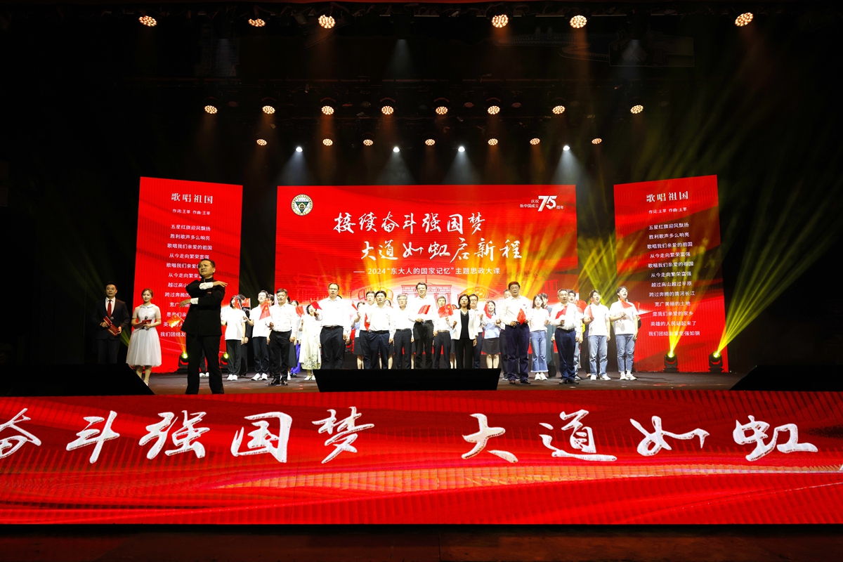 主题思政课在庄严的《中华人民共和国国歌》声中拉开帷幕。全体师生首先观看了“课程序章”——《千重山水千重歌 万里家国万里志》视频短片,回顾了新中国成立75周年以来,东大人深刻而感人的国家记忆。